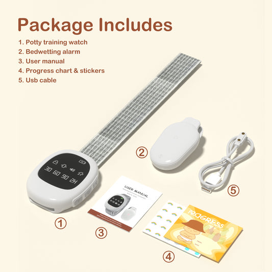 2-in-1 Upgraded Wireless Bedwetting Alarm & Potty Watch, MOMYMUST Rechargeable Potty Training Watch with Music and Vibration, Customized Timer, Bed Wetting Alarm for Kid Elder Adult